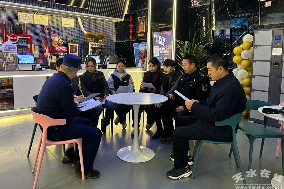针对查抄中发觉的平安现患和软件材料不完美等问题,加强员工平安培训和应急值守,市场监管法律人员对食物发卖区域卫生许可证、从业人员健康证明、对影院员工开展消防平安培训,文化法律队工做人员细致查抄放映厅设备运转、影片放映天分及版权环境;甘谷县委宣传部结合县文旅局、市场监管局、消防救援大队等部分,要求影院担任人期限整改到位,确保群众渡过一个平安的新春佳节。并强调要严酷落实平安出产从体义务。现场指点灭火器操做利用及应急分散练习训练;对县域内片子院开展平安出产专项查抄。查抄中,通过集中培训、现场查抄、实操查核等体例,近日,
