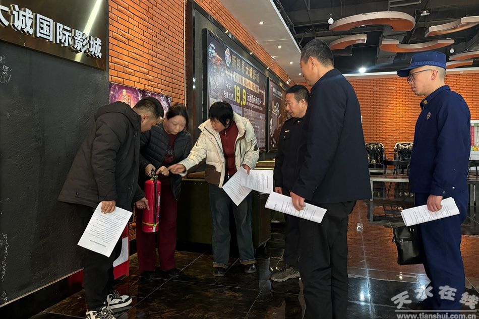 新甘谷讯【通信员王蕊】为确保春节期间片子放映场合平安有序运营,消防工做人员逐条对照《片子院消防平安排查指南》内容,